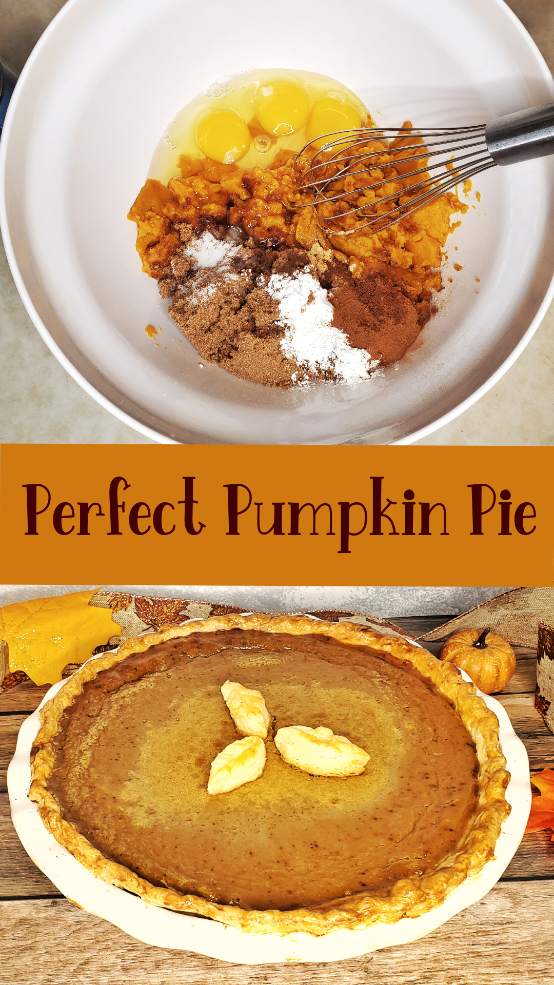 - In a large bowl, combine sugar, cornstarch, salt, ginger, cinnamon, cloves, pumpkin puree, and 3 eggs. Beat well.