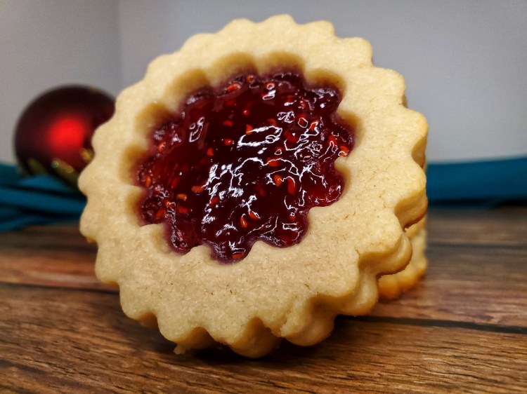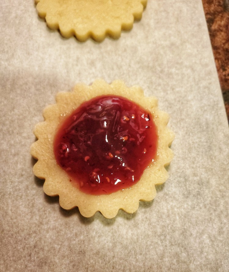 I might have mentioned this already, but I tend to spread my love through food. And I’m here to share some of that with you! I made several different types of cookies this year: sugar, snowball, ginger molasses, chocolate brownie peppermint, snickerdoodle, and the one I’m going to share with you today: my Raspberry Holiday Cookies!