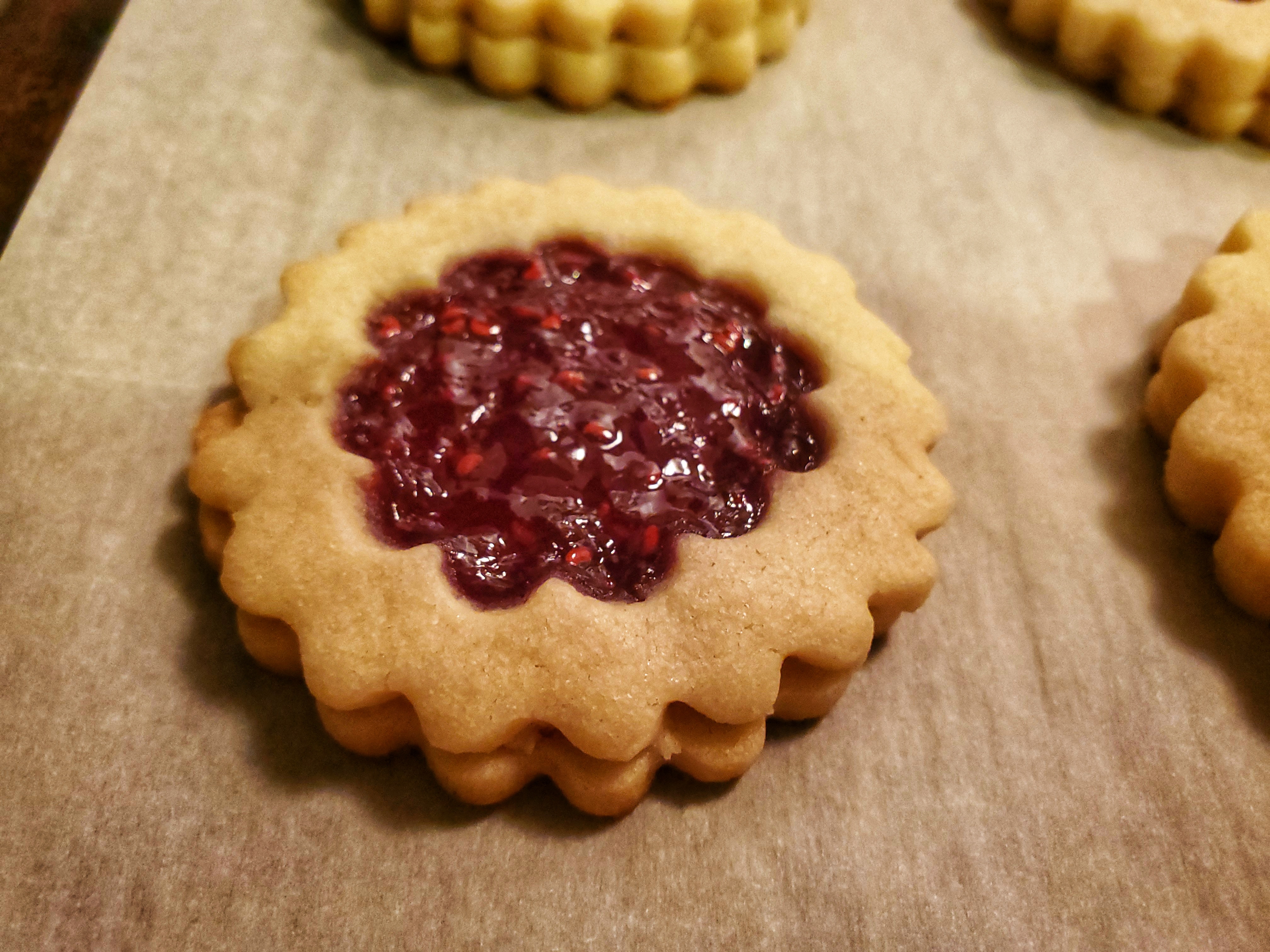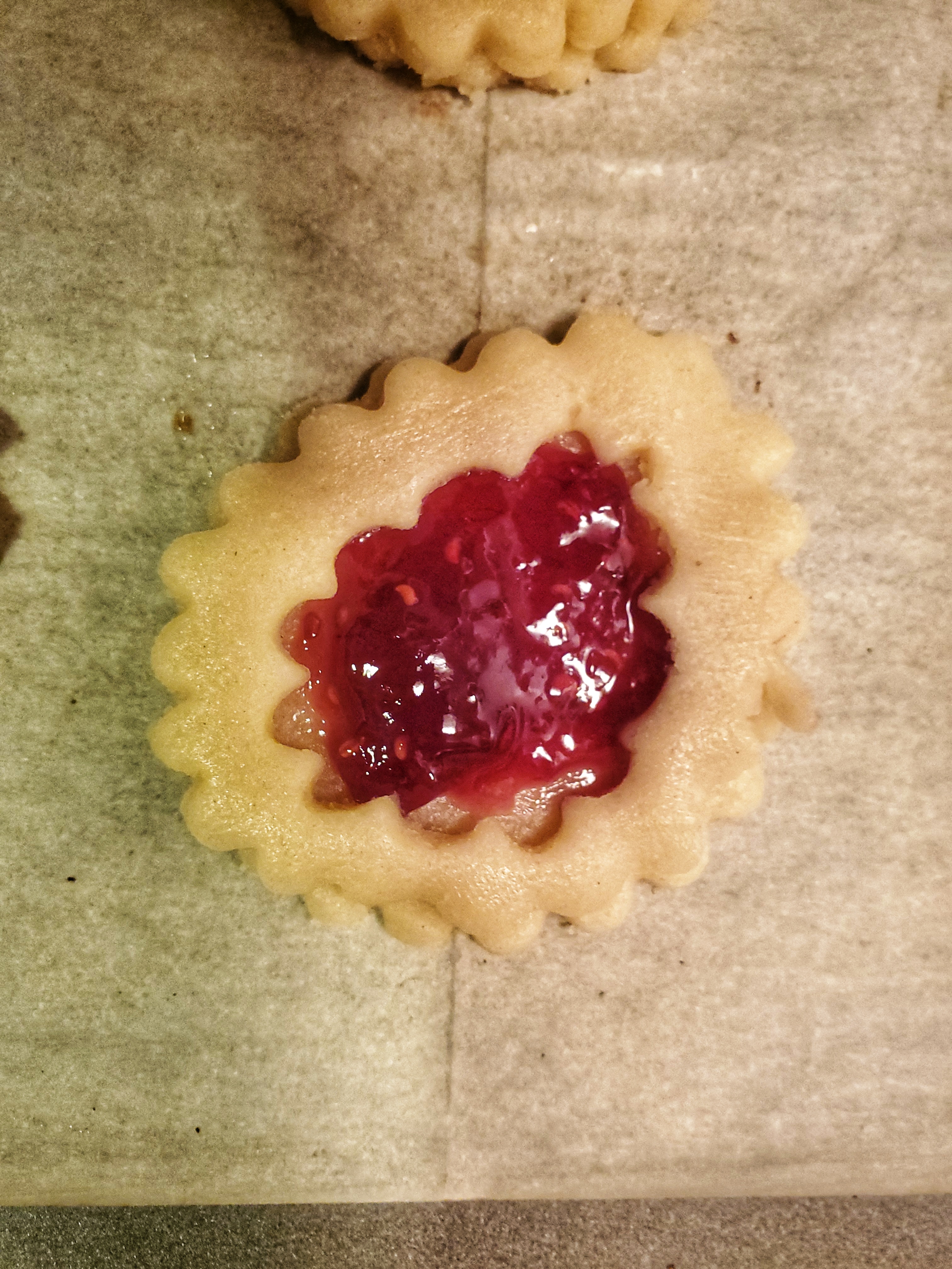 I might have mentioned this already, but I tend to spread my love through food. And I’m here to share some of that with you! I made several different types of cookies this year: sugar, snowball, ginger molasses, chocolate brownie peppermint, snickerdoodle, and the one I’m going to share with you today: my Raspberry Holiday Cookies!