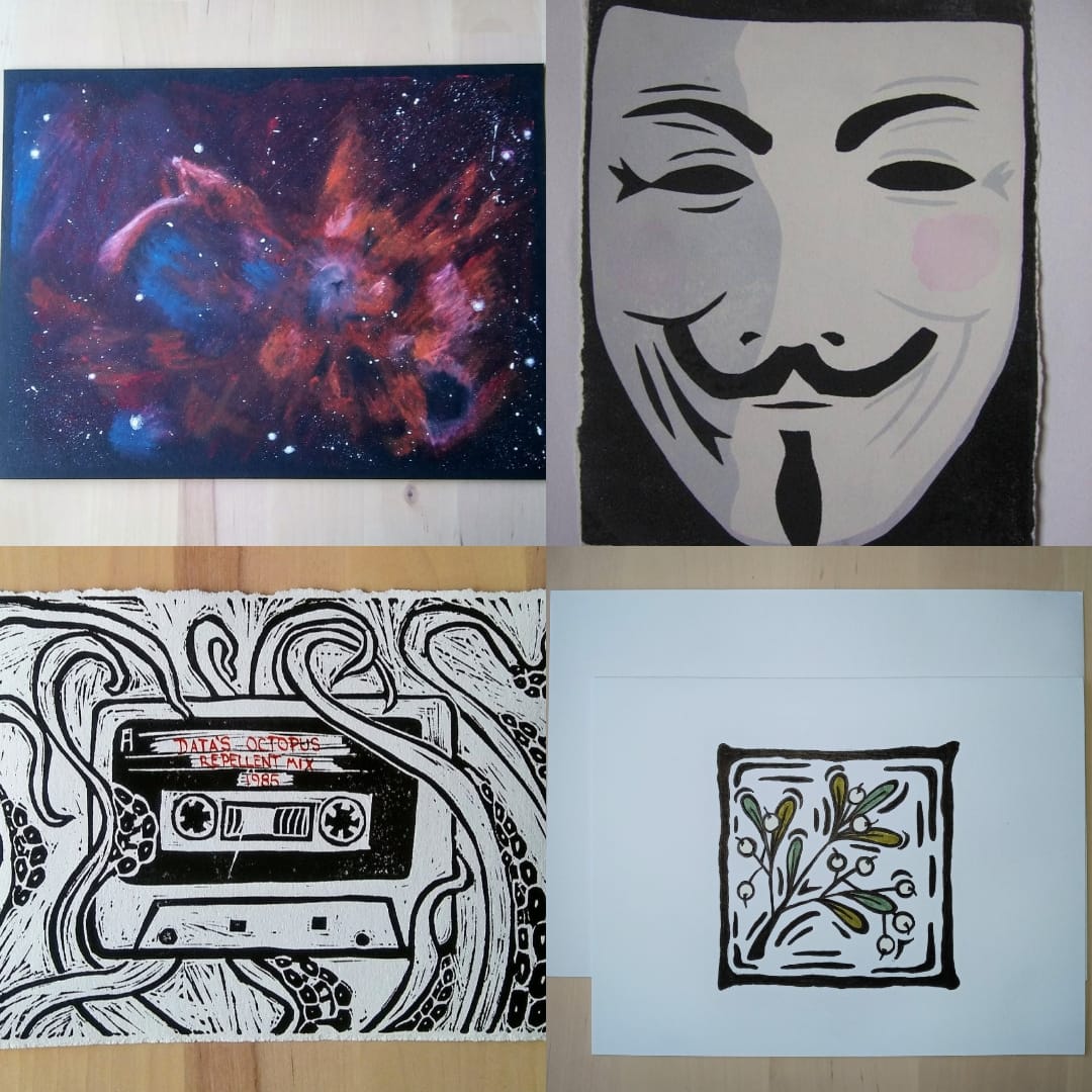 “I love creating fine art and crafts and often switch to one or the other if a project is frustrating me. I am in love with all that is geek, art, and science. Geekery is a medium that reaches across all boundaries, so Nerds unite!”